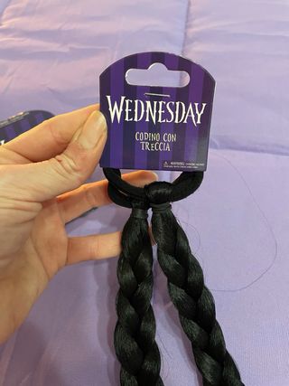 Vendo 2 elastici con trecce nere e una collana a riproduzione del colletto di Mercoledì Addams. Nuovi e inutilizzati. Ideali per travestimenti di carnevale.