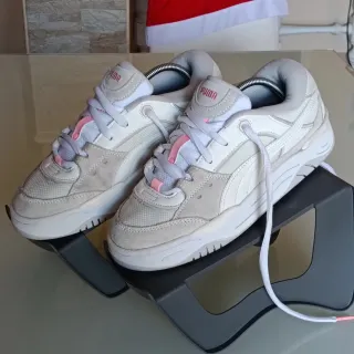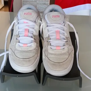 Scarpe Puma da donna in taglia 39. - Design moderno con dettagli rosa. - Tomaia in tessuto e pelle scamosciata. - Suola in gomma. Fodera antisettica plantare anatomico