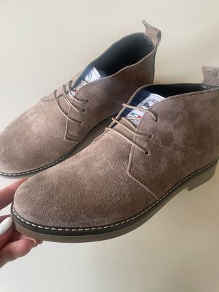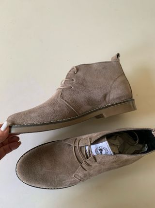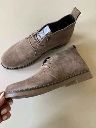 Eleganti polacchine da uomo in vera pelle scamosciata. Un classico intramontabile per ogni guardaroba.prodotto artigianale italiano N 41 colore taupe nuovo - Materiale: vera pelle scamosciata. - Design: polacchine. - Chiusura: lacci.