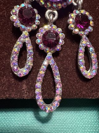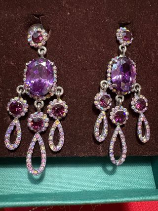Eleganti orecchini pendenti, perfetti per aggiungere un tocco di colore. - Realizzati in argento 925. - Incastonati con pietre naturali viola. - Design a goccia con dettagli luminosi.