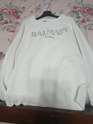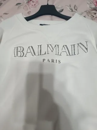 Felpa girocollo Balmain Paris. - Logo Balmain Paris stampato sul davanti. - Tessuto morbido e confortevole.