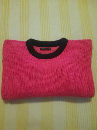 Maglione da donna in maglia a coste. Presenta un girocollo con bordo a contrasto. - Girocollo con bordo nero. - Maniche lunghe. - Vestibilità comoda.