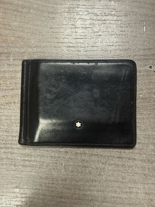 Elegante portafoglio Montblanc in pelle. - Clip per banconote integrata. - Design classico e funzionale.
