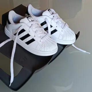 Scarpe Adidas Superstar per bambino/a, taglia 25. - Design unisex. - Iconiche strisce nere. - Punta a conchiglia.