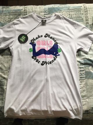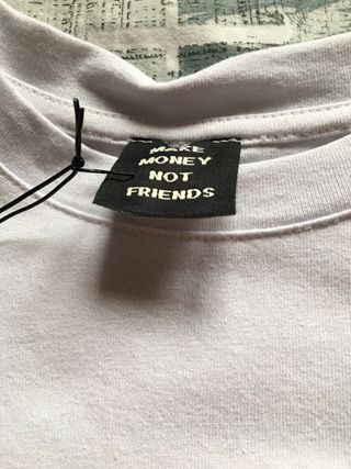 Maglietta bianca con stampa "Make Money Not Friends". - Perfetta per un look casual e di tendenza. - Taglia unica.