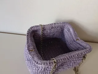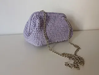 Borsa fatta a mano con un design unico. - Realizzata con filato di alta qualità. - Chiusura con bottoni a pressione magnetici. - Catena metallica per portarla a spalla.