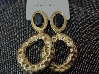 Orecchini pendenti dorati con pietra nera