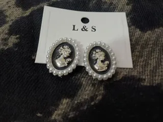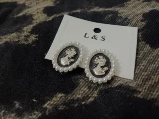 Eleganti orecchini in stile vintage, con un design ispirato ai cammei. - Dettaglio del profilo di una figura classica. - Cornice decorata con piccole perle. - Chiusura sicura per un uso confortevole.
