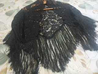 Sciarpa vintage pizzo nero con frange