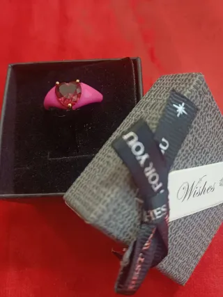 Anello cuore rosa con pietra rossa