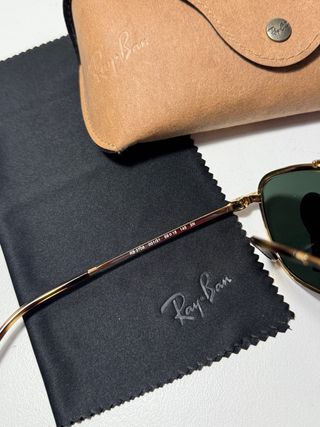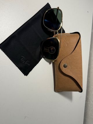 Bellissimi occhiali da sole Rayban Aviator, dal design senza tempo. Sono in ottime condizioni e perfetti per aggiungere un tocco di stile al tuo look. - Montatura in metallo color oro - Lenti verdi