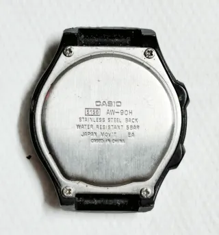 Orologio da polso CASIO 5156 AW-90H quadrante nero e dettagli dorati. Presenta una combinazione di display analogico e digitale usato, funzionante, senza cinturino, normali segni di uso come nelle foto, visto e piaciuto.