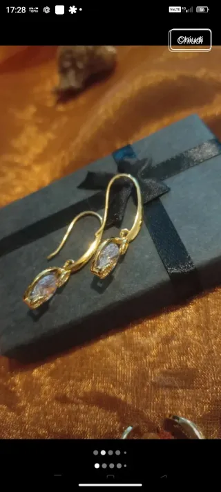 Eleganti orecchini pendenti con finitura in oro 24k. - Design raffinato con pietra incastonata. - Placcatura in oro 24 carati.