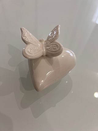 Grazioso portagioie a forma di cuore, decorato con una farfalla. - Design a forma di cuore. - Dettaglio farfalla. - Finitura liscia e lucida.