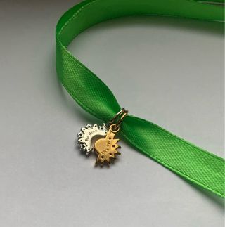 Delizioso ciondolo a forma di luna, perfetto per aggiungere un tocco speciale. - Design a mezzaluna. - Incisione I SHOULD GIVE YOU THE MOON sul retro. - Charm con nastro verde incluso.