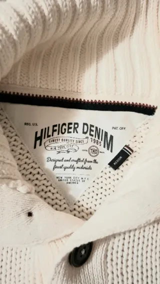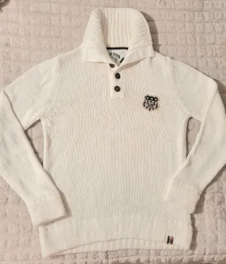 Bellissimo Maglione Pullover Tommy Hilfiger linea Denim tg.M Nuovo, colore bianco/avorio, mai indossato, 100%cotone. Questo maglione è un pullover a maniche lunghe caratterizzato da un collo alto con chiusura a bottoni e un logo applicato sul petto, collo alto "chunky". MISURE: Lunghezza 73 cm Spalle 50 cm Manica 73 cm Torace/ Ascelle 56 cm Vita 50 cm