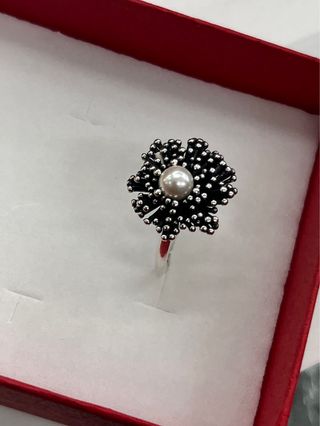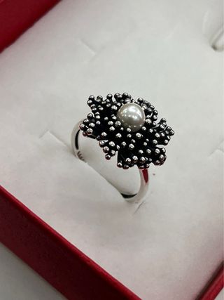 Elegante anello con un design floreale e una perla al centro. - Design floreale dettagliato - Perla centrale luminosa