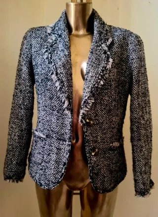 Raffinatissima Giacca/Blazer in Tweed Lana Luisa Spagnoli tg.46IT Nuova. Questa giacca presenta uno stile classico in tweed, caratterizzato da bordi sfrangiati e una trama testurizzata, tasche frontali con pattina e una vestibilità regolare o leggermente corta (cropped). È un vero stile di eleganza e raffinatezza! MISURE: Lunghezza 63 cm Spalle 43 cm Manica 60 cm Torace/ Ascelle 54 cm (giro completo 108 cm) Vita 45 cm (giro completo 90 cm)