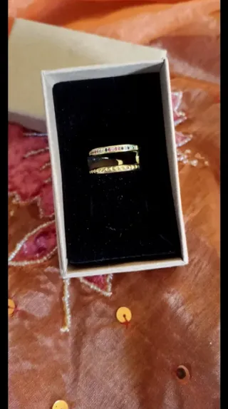 Elegante anello in ottone placcato oro 18k. Un accessorio versatile che aggiunge un tocco di stile. - Design moderno con inserti neri. - Dettagli con pietre colorate. - Finitura lucida.
