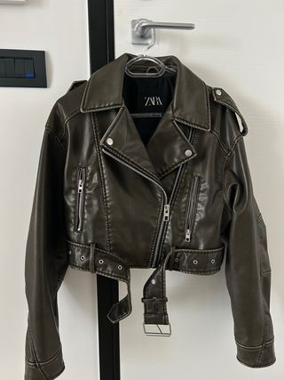 Giubbotto stile biker in ecopelle, con dettagli effetto vissuto e cintura. - Effetto pelle - Cintura in vita - Zip frontali e sulle tasche