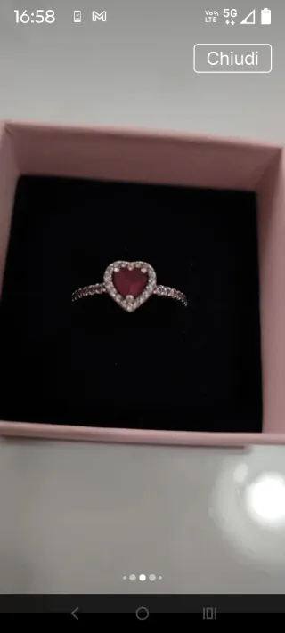 Splendido anello Pandora a forma di cuore con una pietra rossa al centro, circondata da piccoli zirconi scintillanti. - Design a cuore - Pietra centrale rossa - Dettagli in zircone Misura 52