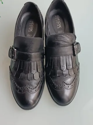 Eleganti scarpe Geox in vera pelle, perfette per completare ogni outfit. - Taglia 37.5 - Dettaglio con frange e fibbia. - Design brogue con traforature. - Tacco comodo alto circa 5.5 cm