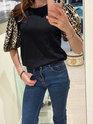 T-shirt Motel maniche leopardate