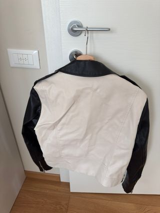 Chiodo Only in ecopelle con un design bicolore che combina nero e bianco. - Maniche lunghe. - Chiusura con zip. - Tasche con zip. - Cinturini alla vita. - Difetto in foto.