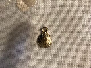 Delicato ciondolo dorato con un design a forma di conchiglia. - Dettagli finemente lavorati. - Anellino per aggancio.