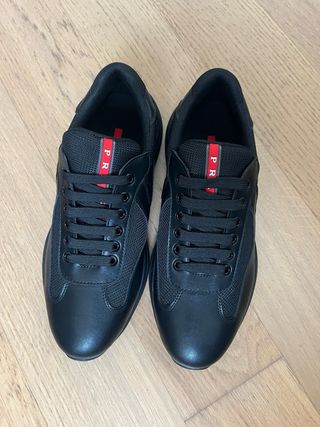 Scarpe da uomo Prada in pelle nera, eleganti e comode. Sono nuove mai indossate e dì ottima qualità. - Logo Prada sulla linguetta. - Lacci neri. - Include scatola, dustbag e certificati.