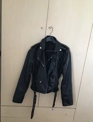 Giubbotto stile chiodo con cintura. - Design asimmetrico con zip. - Tasche frontali con zip. - Cintura regolabile con fibbia.