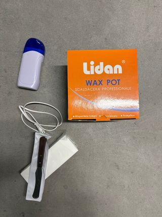 Set per la depilazione con fornetto scaldacera e scaldacera roll. Inclusa spatola e strisce depilatorie. Utilizzate un paio di volte.