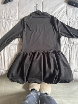 Vestito nero con maniche lunghe e gonna a palloncino. - Collo alto - Maniche lunghe - Gonna a palloncino con elastico in vita