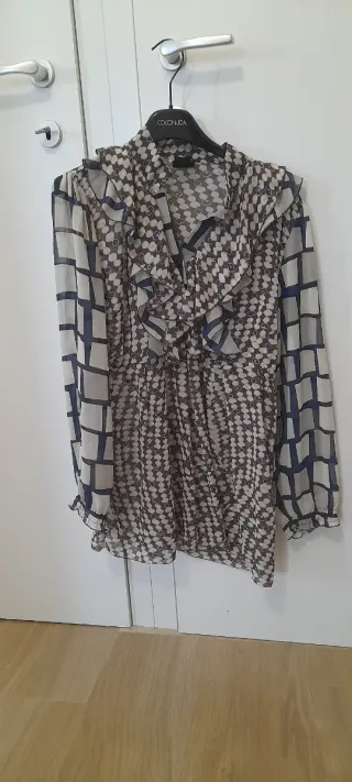 Elegante blusa Coconuda con un diseño único. - Fantasia geometrica. - Maniche lunghe. - Volant sul davanti.