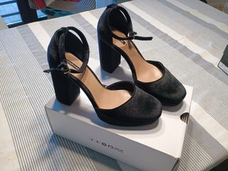 Scarpa elegante simil ciniglia. N.39 piccolo (io vesto 38). Alta ma comoda con tacco 10 e plateau. Usata appena un paio di volte.