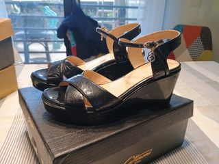 Sandalo comodo con zeppa da 7cm in vernice nera n.38 originale Gattinoni