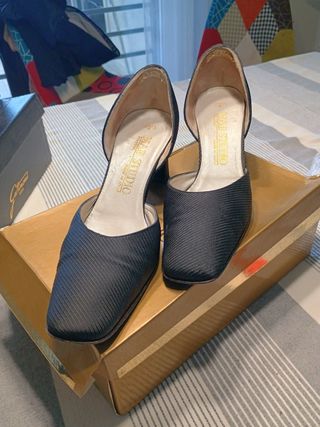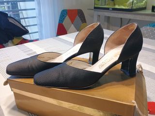 Eleganti décolleté n.38 in raso a costine nero tacco 6cm come nuovo