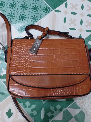 Bellissima borsa a tracolla Combipel, nuova. - Tracolla regolabile. - Chiusura con patta. - Pelle effetto coccodrillo.