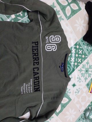 Felpa girocollo Pierre Cardin in un elegante color verde oliva. - Logo 96 NYC sul davanti. - Scritta PIERRE CARDIN in basso. - Etichetta interna con taglia 14 anni.