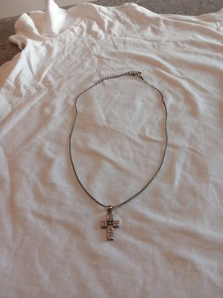 Bellissima collana con ciondolo a croce. - Catenina in acciaio di colore nero. - Ciondolo a croce in acciaio color argento con dettagli scintillanti. - Chiusura a moschettone.