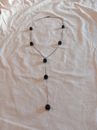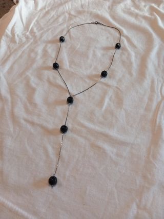 Bellissima collana lunga con ciondoli neri e catena argentata. - Elegante e raffinata - Perfetta per ogni occasione - Lunghezza ideale per valorizzare il décolleté