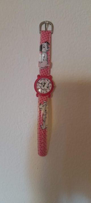 Bellissimo orologio a tema 101 Dalmati, perfetto per una bambina. - Cassa e cinturino in plastica. - Motivo a pois rosa e immagini dei Dalmati. - Chiusura con fibbia. - Nuovo, mai usato.