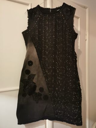 Abito Desigual denim e tweed nero