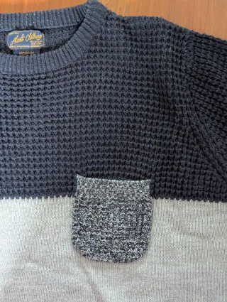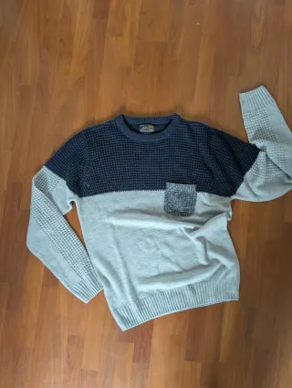 Maglione con trama a nido d'ape e taschino. - Colore blu e grigio. - Taglia M.