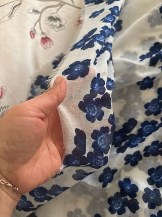 Bellissimo foulard con fantasia floreale, molto morbido al tatto. Perfetto per aggiungere un tocco di stile.155 per 100 - Fantasia: fiori blu su sfondo bianco. - Materiale: tessuto leggero e morbido.
