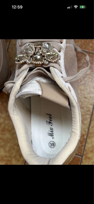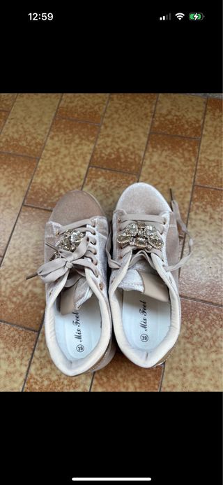 Eleganti sneakers in velluto, perfette per aggiungere un tocco di luce al tuo outfit. - Dettaglio gioiello frontale con strass. - Lacci in raso. - Fodera interna in tessuto. - Suola in gomma.Indossate in una sola occasione