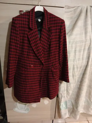 Giacca donna con un classico motivo a quadri. - Fantasia a quadri rossi e neri. - Collo a rever. - Chiusura con bottoni. - Tasche frontali applicate.