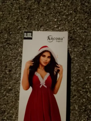 Vestito a tema natalizio, perfetto per le feste. - Colore rosso vivace. - Dettagli in pelliccia bianca. - Cappuccio integrato.