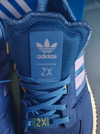 Sneakers Adidas ZX 5k BOOST in colorazioni blu e giallo. - Tomaia in mesh traspirante. - Dettagli a contrasto gialli. - Logo Adidas sul tallone e sulla linguetta. - Suola BOOST per un'ammortizzazione reattiva.