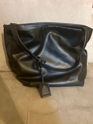 Borsa a mano Calvin Klein in ecopelle nera. Design moderno e capiente, perfetta per ogni occasione. - Logo Calvin Klein impresso sul davanti. - Chiusura con zip. - Manici comodi per il trasporto a mano o a spalla.